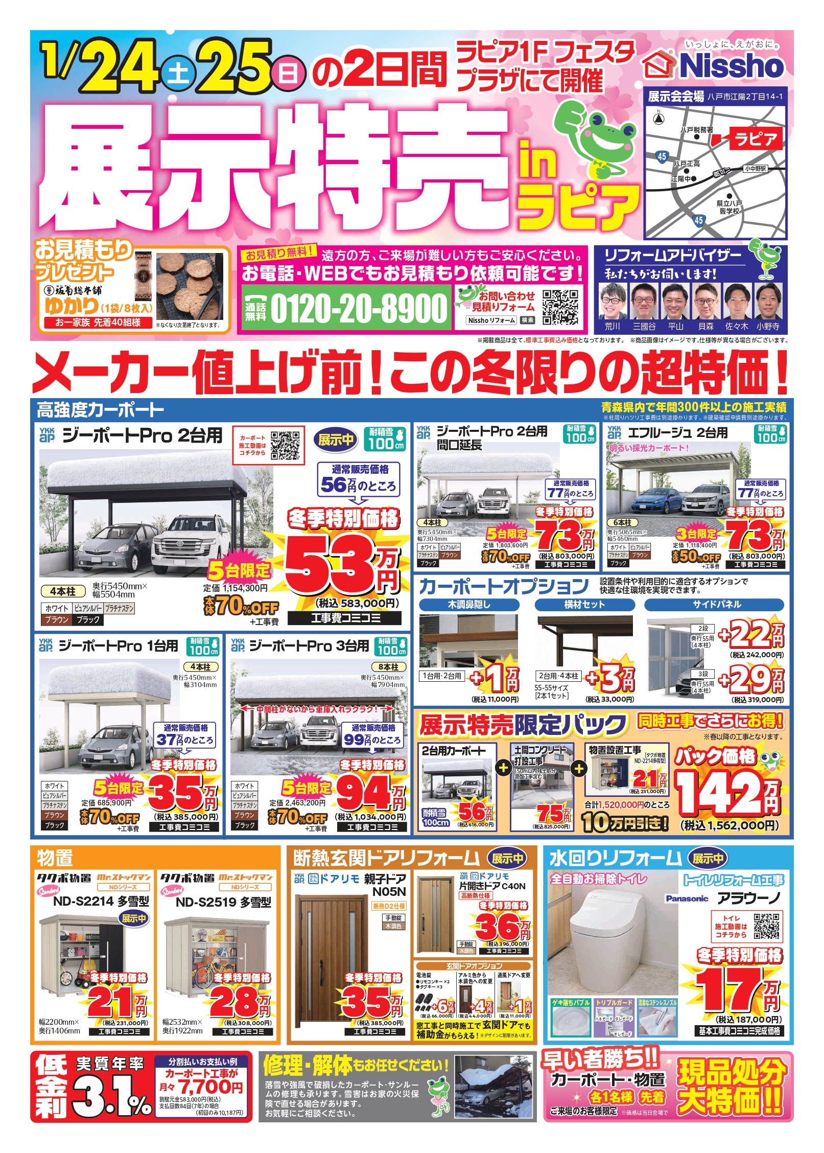 お知らせ 【BullPulu 八戸ラピア店 2/27(金) NewOpen!】 イベント 【居酒屋酔居笑(よいしょ) お弁当販売】2026年1月20日(火)~31日(土) 12:00~16:30 ※売切れ次第終了 イベント 【Nissho 展示特売会】2026年1月24日(土)~25日(日) 24日:10時~17時/25日:10時~16時 イベント 【石橋煎餅 南部せんべい販売】2026年1月24日(土)~25日(日) 10:00~18:00 ファッション 服飾雑貨 生活用品 食品 サービス グルメ Facebookもチェック 八戸ショッピングセンター ラピア エステール 掲載日:2026.01.21 当社オリジナルブランド 『Tis』 ~Precious you~ エステール 掲載日:2026.01.17 当社オリジナルブランド 『Tis~ティス~』 婚約指輪 はんこの水晶堂 掲載日:2026.01.16 寒中見舞い5枚パック販売中😊 San-ai Resort northerly / サンアイリゾート ノーザリー 掲載日:2026.01.16 カシュクール脇高ブラセット入荷❣️ エステール 掲載日:2026.01.15 2026年にプロポーズ♪婚約指輪をご検討の方に朗報♪ あん樹 掲載日:2026.01.10 素敵なトートバッグ入荷🎉 幸楽苑 掲載日:2026.01.10 魚介とんこつらーめん登場✨ Be Stone / ビーストーン 掲載日:2026.01.10 1月のピックアップ商品✨ Be Stone / ビーストーン 掲載日:2026.01.10 あけましておめでとうございます🌄