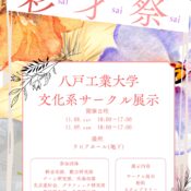 【八戸工業大学 文化系サークル展示 彩才祭】2025年11月8日(土)~9日(日) 10:00~17:00