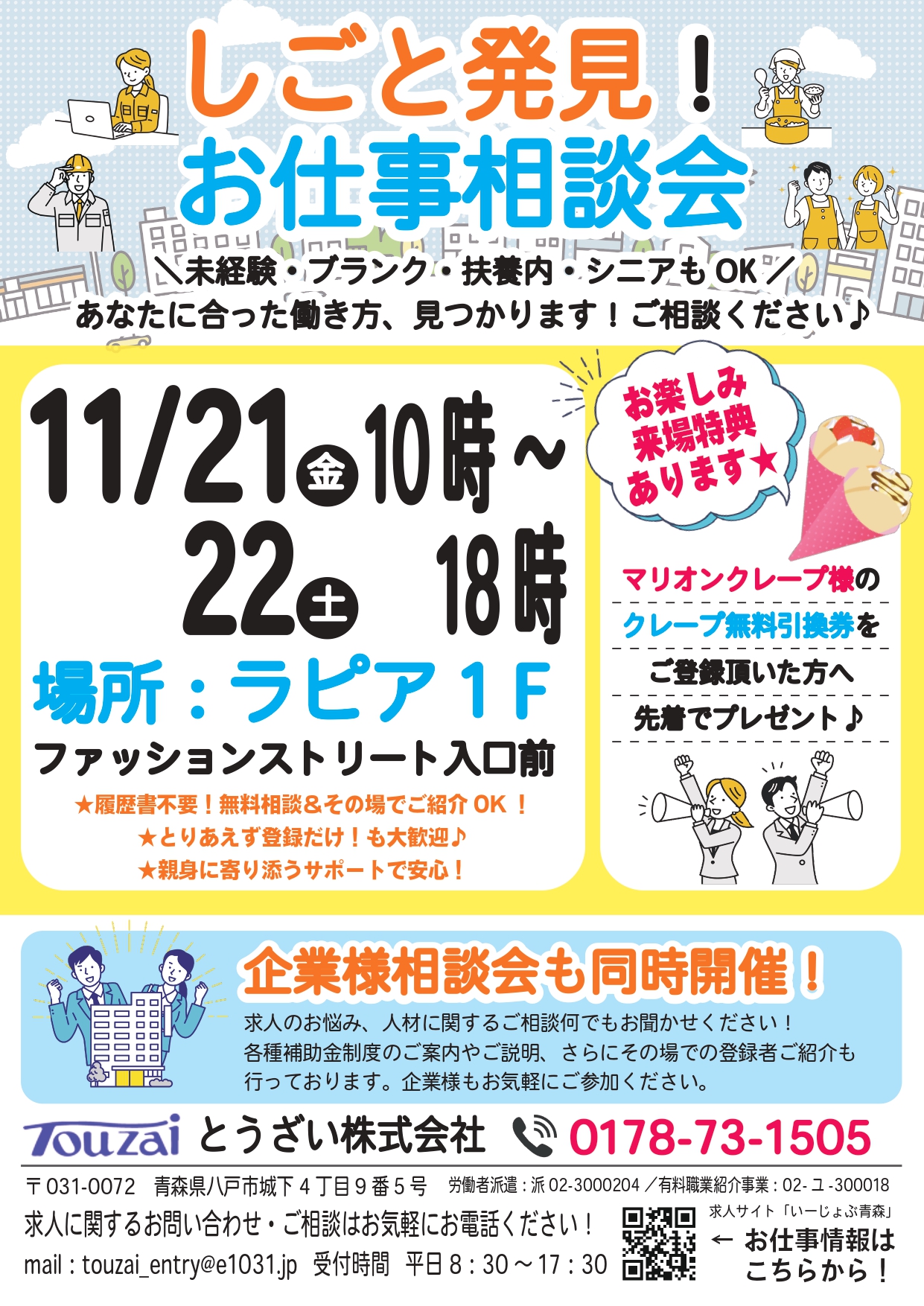 ファッション 12 服飾雑貨 7 生活用品 15 食品 6 サービス 19 グルメ 15 Facebookもチェック 八戸ショッピングセンター ラピア イベント お知らせ イベント event & news イベント 1F フェスタプラザ 【ラピアのブラックフライデー】 イベント B1F ラピアホール 【はちのへ文具の博覧会mini】2025年11月20日(木)~12月7日(日) 10:00~18:00 ※最終日15時閉場 お知らせ 1F マルメ 【1F『マルメ』閉店と『函館パン工房エスポワール』オープンのお知らせ】 イベント 1F 不二家 【不二家 115th創業祭】2025年11月1日(土)~ イベント 1F 中央階段下 【天平キムチ】2025年11月13日(木)~18日(火) 10:00~19:00 ※最終日18:00終了 イベント B1F ラピアホール 【八戸ガス 暖房フェア】2025年11月15日(土)~16日(日) 10:00~17:00 イベント 1F フェスタプラザ 【SHOO・LA・RUE 冬物売り尽くしSALE】2025年11月19日(水)~27日(木) 10:00~18:30 イベント 1F 中央階段下 【カードル パン販売】2025年11月20日(木) 10:00~16:00 ※売切れ次第終了 イベント 1F ファッションストリート入口 【しごと発見!お仕事相談会】2025年11月21日(金)~22日(土) 10:00~18:00 イベント 1F 中央階段下 【石橋煎餅 南部せんべい販売】2025年11月25日(火)~28日(金) 11:00~18:00 1 / 3123»