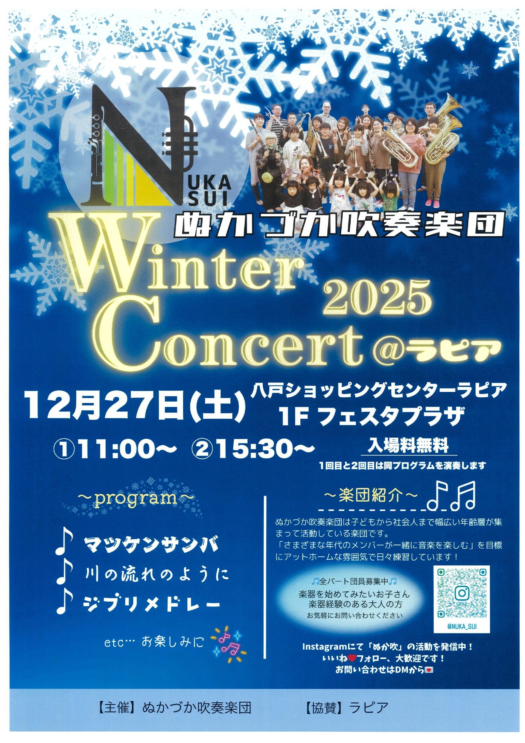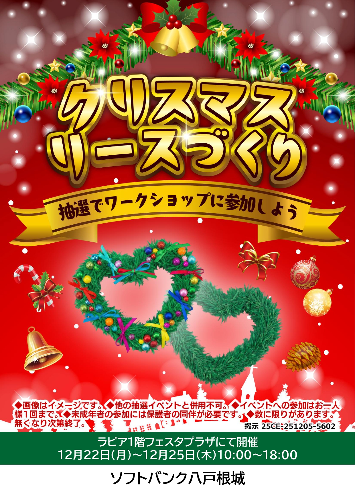 ファッション 12 服飾雑貨 7 生活用品 15 食品 6 サービス 19 グルメ 15 Facebookもチェック 八戸ショッピングセンター ラピア イベント お知らせ イベント event イベント B1F ラピアホール 【ミッフィーzakkaフェスタ】2025年12月20日(土)~1月12日(月祝) 10:00~18:00 ※年末年始の営業時間は異なります。 イベント 1F フェスタプラザ 【GOMA ライブアート】2025年12月20日(土)~21日(日) 10:00~17:00 イベント 1F 中央階段下 【菓匠将満】2025年12月20日(土)~29日(月) 10:00~20:00 ※最終日17:00終了 イベント 1F フェスタプラザ 【クリスマスリースづくり】2025年12月22日(月)~25日(木) 10:00~18:00 イベント 1F ファッションストリート入口 【石橋煎餅 南部せんべい販売】2025年12月27日(土)~29日(月) 10:00~18:00 イベント 1F フェスタプラザ 【ぬかづか吹奏楽団 Winter Concert2025】2025年12月27日(土) ①11:00~ ②15:30~ イベント 1F フェスタプラザ 【第30回 八戸市少年少女発明クラブロボットコンテスト】2026年1月10日(土) 13:00~16:00 イベント B1F ラピアホール 【第54回ふれあい作品展】2026年1月16日(金)~18日(日) 16日:10:00~16:30/17.18日:10:00~17:30 イベント B1F ラピアホール 【げんねんECOスクール】2025年1月31日(土) 13:30~15:30 1 / 11