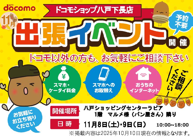 ファッション 12 服飾雑貨 7 生活用品 15 食品 6 サービス 19 グルメ 15 Facebookもチェック 八戸ショッピングセンター ラピア イベント お知らせ イベント event イベント 1F フェスタプラザほか 【35周年セールFINAL】2025年10月18日(土)~11月3日(月祝) イベント B1F ラピアホール 【にしむらゆうじのひみつ展】2025年10月3日(金)~11月3日(月祝) 10:00~18:00 イベント 1F 中央階段下 【ROYAL SWEETS】2025年11月1日(土)~10日(月) 10:00~20:00 ※最終日19:00まで イベント 1F フェスタプラザ 【伝統芸能 猿まわし特別公演】2025年11月1日(土) 11:00~17:00※1時間ごとに1公演(約15分) イベント 1F フェスタプラザ 【ジロー今村の大道芸】2025年11月2日(日) ①11:00~ ②15:00~ イベント 1F フェスタプラザ 【キミとアイドルプリキュア♪ショー】2025年11月3日(月祝) ①11:00~ ②15:00~ イベント 1F フェスタプラザ 【北いわて物産フェア】2025年11月8日(土)~9日(日) 10:00~18:00 ※9日は17:00終了 イベント B1F ラピアホール 【八戸工業大学 文化系サークル展示 彩才祭】2025年11月8日(土)~9日(日) 10:00~17:00 イベント 1F 不二家 【不二家 115th創業祭】2025年11月1日(土)~ イベント 1F マルメ(パン屋)隣り 【ドコモショップ八戸下長店】2025年11月8日(土)~9日(日) 10:00~18:00 1 / 212»