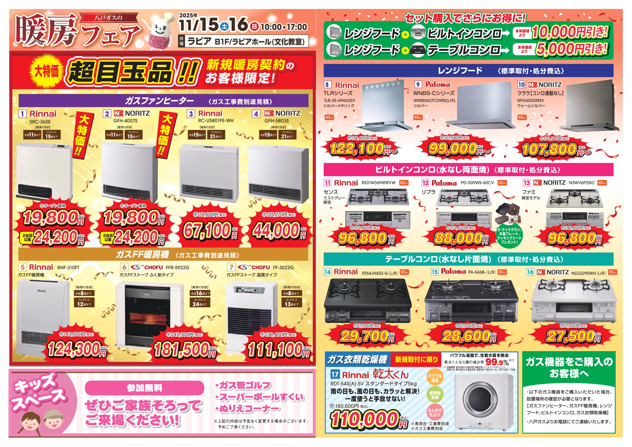 【八戸ガス 暖房フェア】2025年11月15日(土)~16日(日) 10:00~17:00