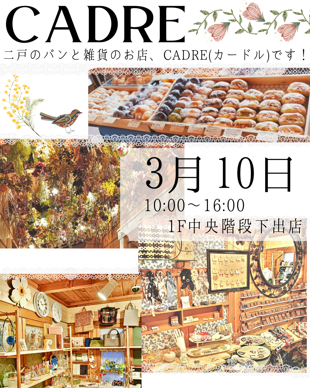 【CADRE パン販売】2026年3月10日(火) 10:00~16:00