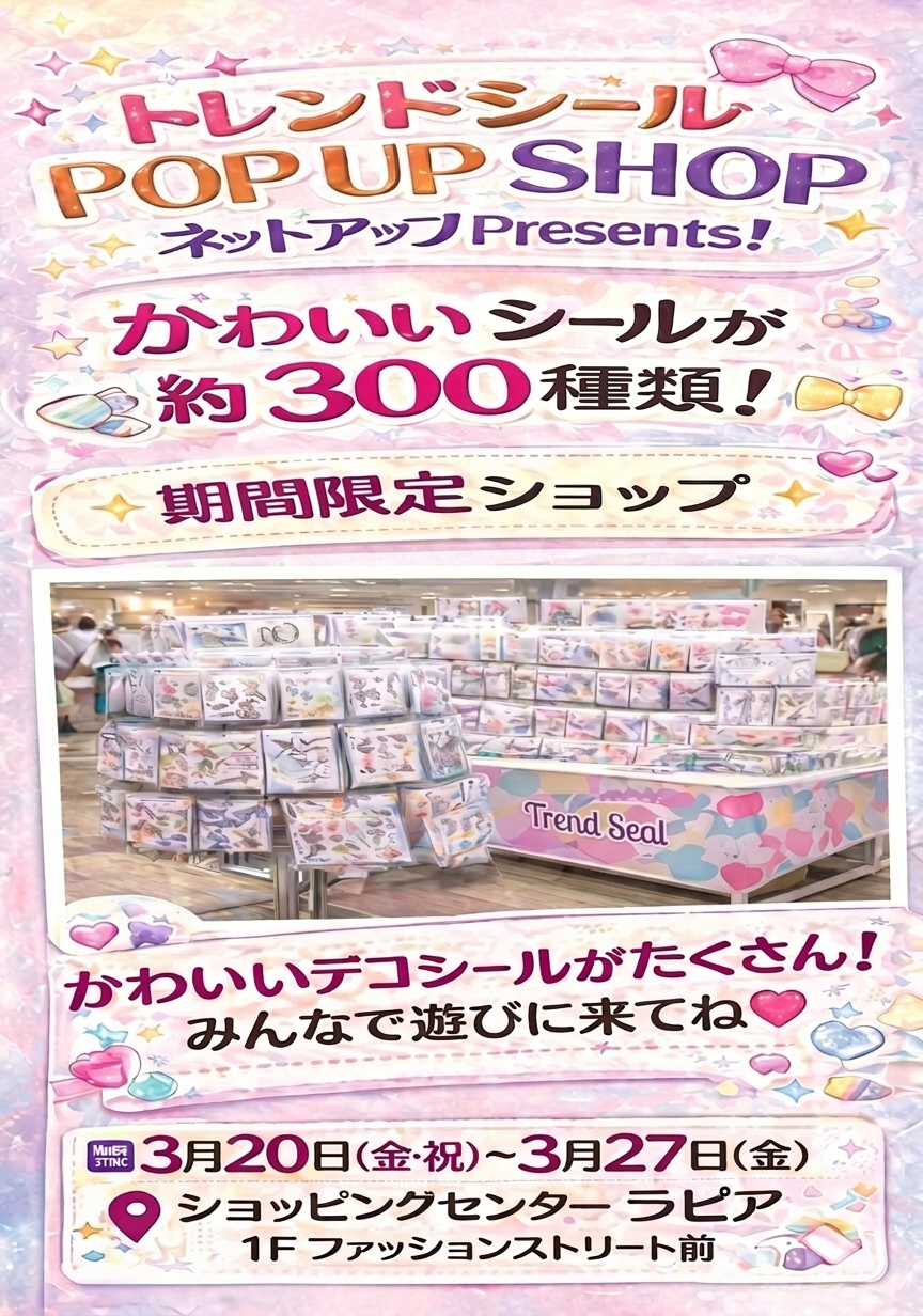 【デコ・トレンドシール POPUP STORE】2026年3月20日(金祝)~3月27日(金) 10:30~18:00