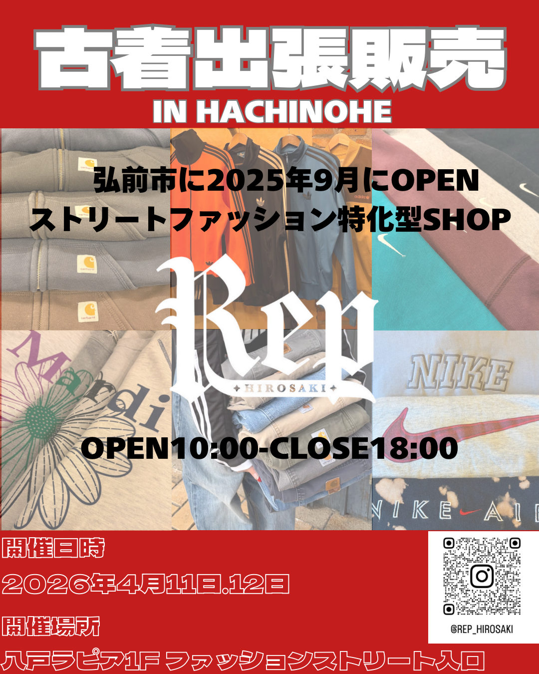 ファッション 12 服飾雑貨 7 生活用品 15 食品 7 サービス 20 グルメ 15 Facebookもチェック 八戸ショッピングセンター ラピア イベント お知らせ イベント event イベント 1F フェスタプラザ 【フォレストホームサービス ポムポムプリンスタンプラリー】2026年4月4日(土)~5日(日) 10:00~18:15 イベント 1F フェスタプラザ 【マックハウス MAX50%OFFセール】2026年4月7日(火)~16日(木) 10:00~18:00 イベント 1F 中央階段下 【ジョージのおやつ×和田珈琲】2026年4月11日(土)~12日(日) 10:00~17:00 ※売切れ次第終了 イベント 1F ファッションストリート入口 【Rep 古着出張販売】2026年4月11日(土)~12日(日) 10:00~18:00 イベント 1F フェスタプラザ 【京都味の市】2026年4月18日(土)~27日(月) 10:00~19:00 ※最終日17:00終了 イベント 1F 中央階段下 【てづくりくんせい ひこたま】2026年4月18日(土)~19日(日) 10:00~16:00 1 / 11
