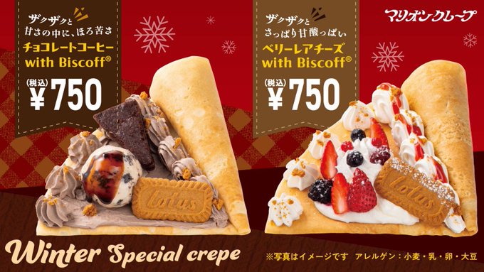 本日より販売開始の、冬限定クレープ2種類のお知らせです📢