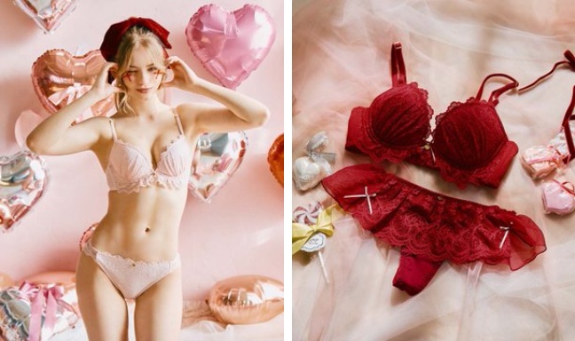 1F San-ai Resort northerlyです💕【楽盛りフィット】シリーズより新作入荷しました✨ハート形のレースとカップ台のフリル、ハートのチャームでバレンタイン向けのラブリーなデザインに😍 ぜひお立ち寄り下さいませ🫶