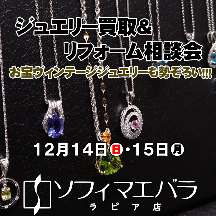「ジュエリー買取&リフォーム相談会」開催中! 金・プラチナ相場が超絶高騰中の今、使われていないジュエリーの査定やリフォーム相談を宝飾の専門家がお受けいたします!大人気のリフレッシュジュエリーもお宝だらけ!是非^^!