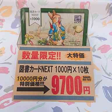 数量限定! 今の時期引きこもり大作戦☆暖かくなって外に出かけたい。がコロナで。。。 家にいることが多くなるこの時期。本や、文具、CD、DVD、手作り本など 格安で購入できる 図書カード販売してます! 1000円×10枚セットです☆