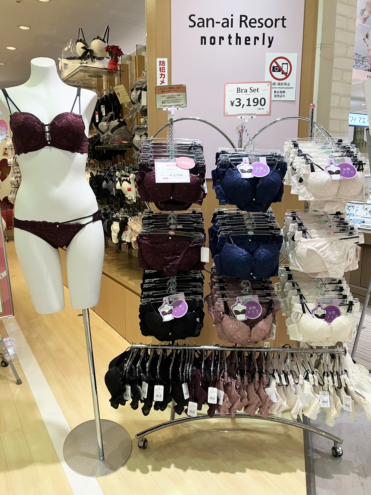 | 取扱い商品 | ブラ・ショーツセット、スリップ、ルームウェア、ブラジャー、キャミソール、雑貨、ショーツ、インナー |