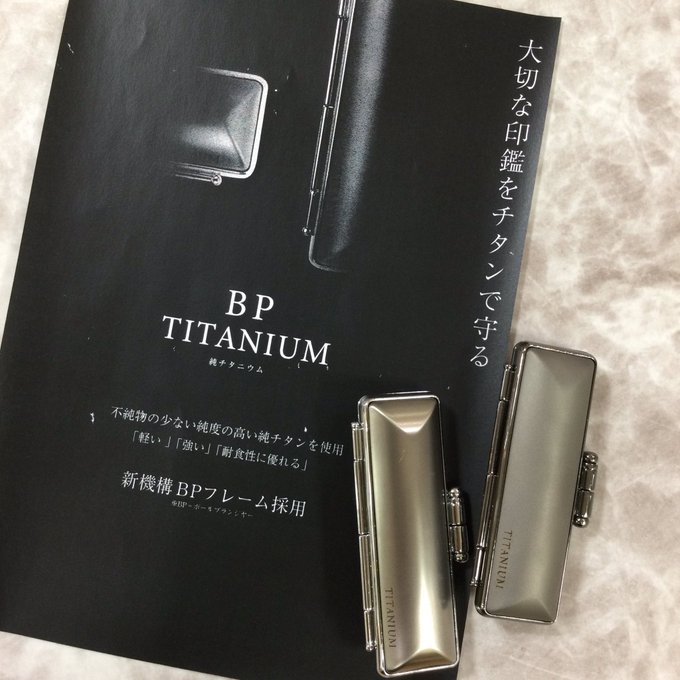 1Fはんこの水晶堂です。🌟新商品 印鑑ケース🌟 光沢のBP チタン ひかり マットなBP チタン なしじ ボディは『軽い』『強い』『耐食性に優れる』 純チタンを使用👀✨ ボールプランジャー機構で 開閉時の「カチッ」と確実な閉まり心地で 高級感のある手応えです👍